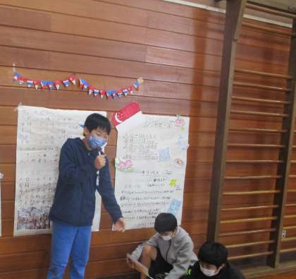 それぞれが選んだ国について食事、風習、位置、文化等々様々な視点で調査してありました。発表の方法も各班ごとに違い工夫されていました。