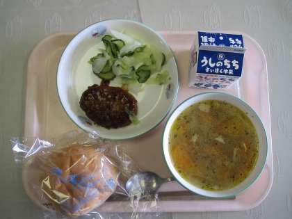 今日の給食 公開日 2022/11/07 更新日 2022/11/07 学校日記 今日の給食は ・セサミバーンズ ・ジャーマンスープ ・ハンバーグのケチャップソースかけ ・塩ゆで野菜 ・牛乳 でした。エネルギーは637キロカロリーでした。今日から立冬。しっかりと食べて寒さに備えましょう。