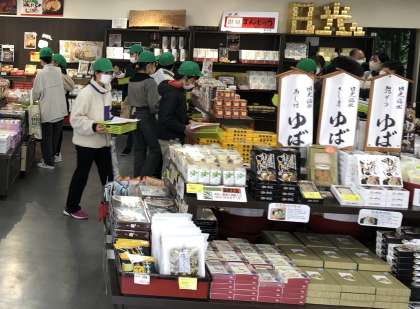 観光センターでは、家族のことを想って悩みながらお土産を選ぶ姿が見られました。クーポン券をピッタリ使い切る子もいて、計画的な買い物ができていました。