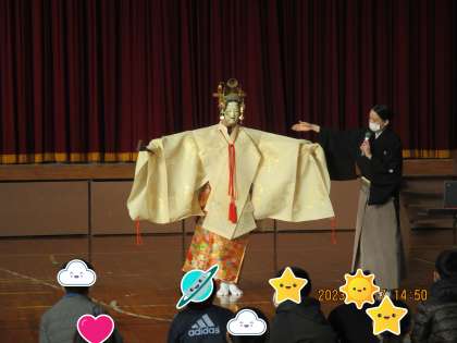 能狂言 公開日 2023/01/20 更新日 2023/01/20 学校日記 1月17日(火)に長久保小にて能狂言を鑑賞きしました。 子供たちにとってはなかなか見る機会が少ないと思いますが 見んな集中してみていました。それぞれ心に残ったものがあ ったようです