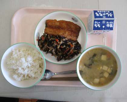 今日の給食 公開日 2023/01/31 更新日 2023/01/31 学校日記 今日の給食は ・発芽玄米ご飯 ・ごまみそ汁 ・さんまのかば焼き ・ひじきご飯の具 ・牛乳 でした。エネルギーは787キロカロリーでした。