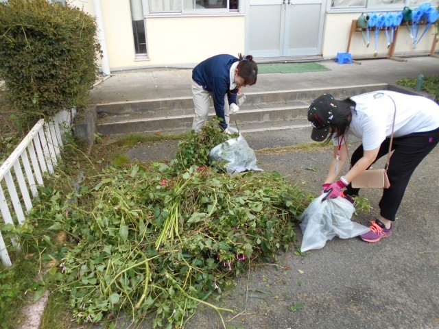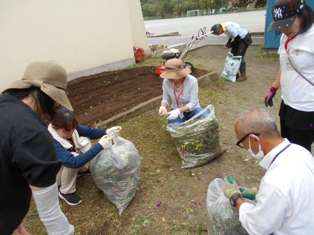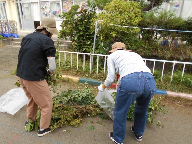運動会前の環境整備として、学校応援団の方々による草刈り・草むしりが行われました。校門付近の垣根にはっていたツルをとったり、雑草の草刈りをしたり、花壇の整備を行ったりしました。着々と運動会に向けて、準備が整ってきています。学校応援団の方々ありがとうございました。※学校応援団員募集中です。ぜひ一緒に子供たちを応援してみませんか。
