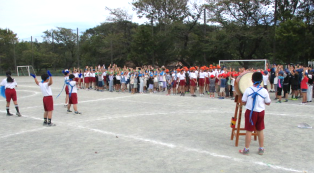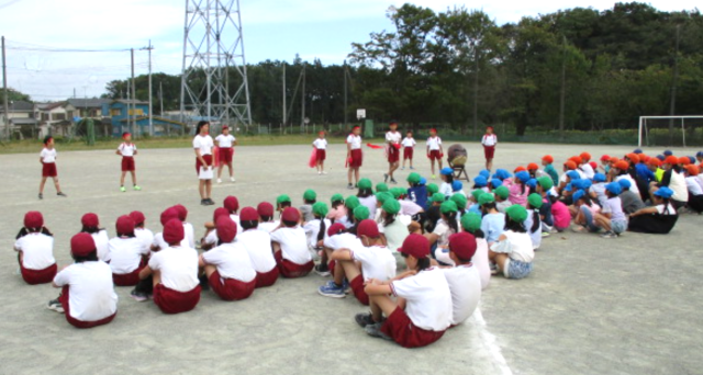 運動会後、組ごとに集まって解団式がありました。ある組の6年生がみんなの今日の素晴らしい応援が優勝に値すると、組のみんなにお礼を言っていました。そこまでみんなを引っ張ってくれた各団長さん、団員の皆さん、お疲れさまでした。どうもありがとう。そして、最後に、6年生の対して、1年生から5年生がお礼のエールが送られました。また一つ、6年生が大きな行事をしっかりと成し遂げてくれました。6年生の皆さん、ありがとう。