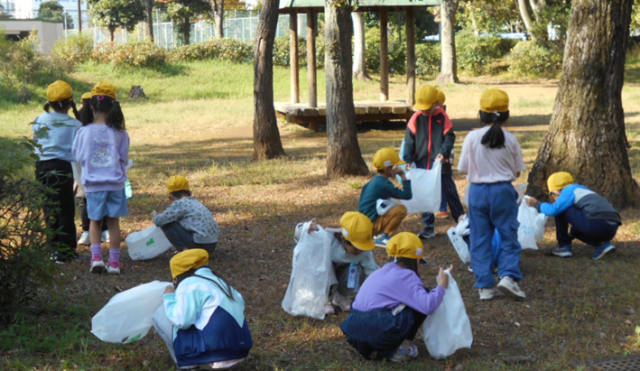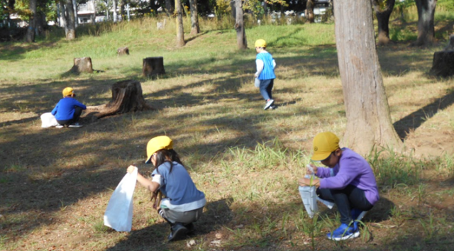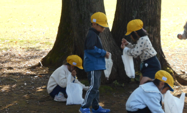 富士見公園に着き、まずは秋探しです。色づき始めた木々の周りでたくさんのどんぐりを見つけることができました。このどんぐりを使って、秋まつりが楽しみです。