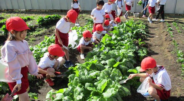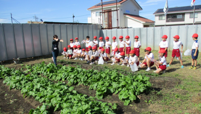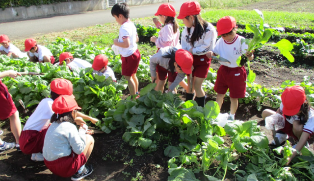 9月26日に蒔いた小松菜が大きく育ちました。他の野菜よりも一足先に収穫です。茎を傷めないように優しく持って、根っこの周辺に移植ごてを入れます。おいしそうな小松菜が収穫できました。