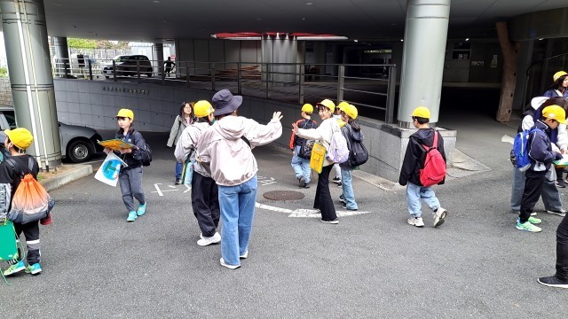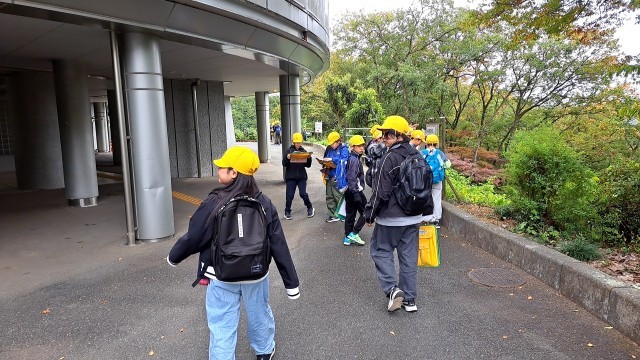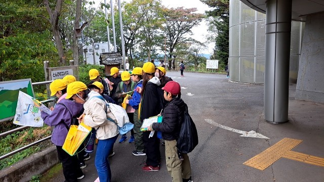次は、クリエイティブウォークです。保護者と学校応援団の見守りの中で、熊よけの鈴を着けながら、山の中を散策します。たくさんチェックポイントを回れるといいですね。