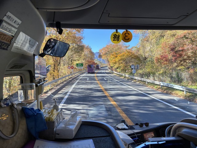 みんなで協力してバスレクを行い、楽しく過ごしています。「いろはにほへと・・・」カーブごとにガイドさんのお話や景色を楽しみながら、酔う人もなく第二いろは坂をあっという間に登りました。