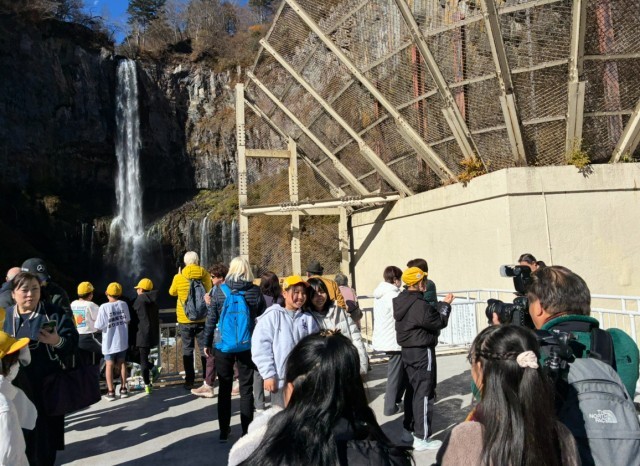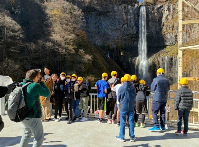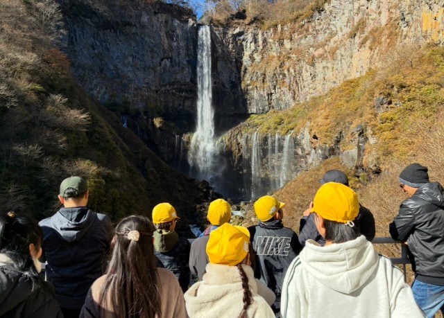 順調に進み 予定通りに華厳の滝に着きました。水量もあり迫力がありました。気温は4.3度、風もなく穏やかな観光日和です。