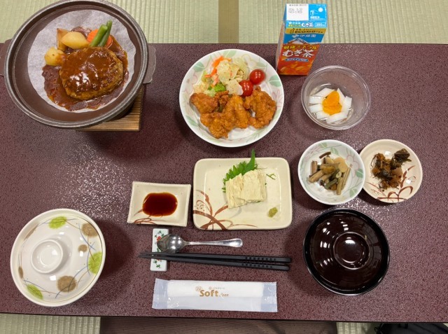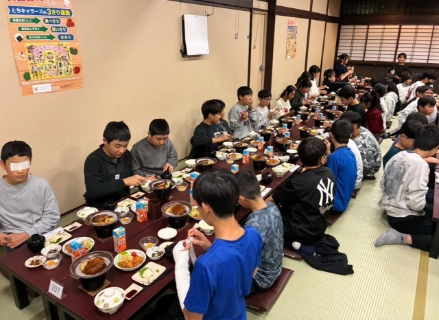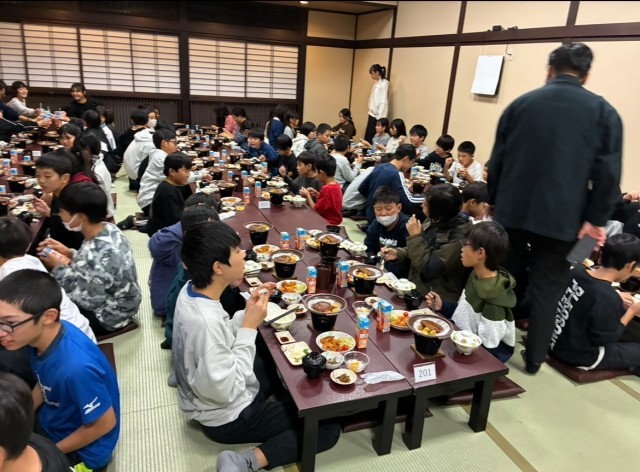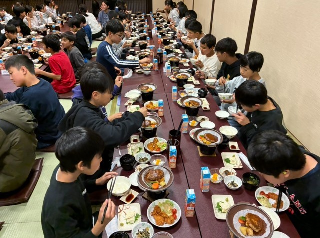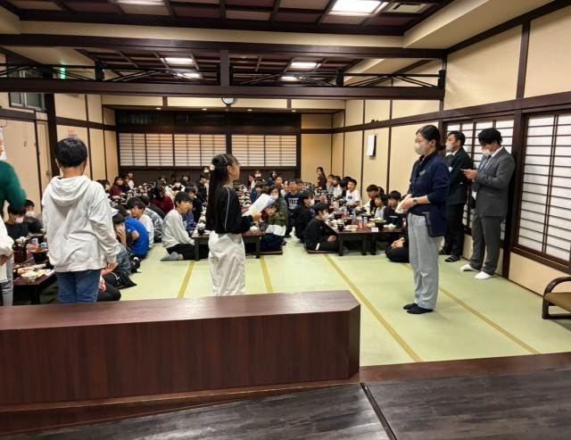 入館のつどいで2日間お世話になるホテルの方に挨拶をして、美味しい夕食です。一日たくさんの見学をしてお腹もぺこぺこ。お代わりもして残さずいただきました。また明日が楽しみです。(早く休んで明日に備えてほしいのですが…)