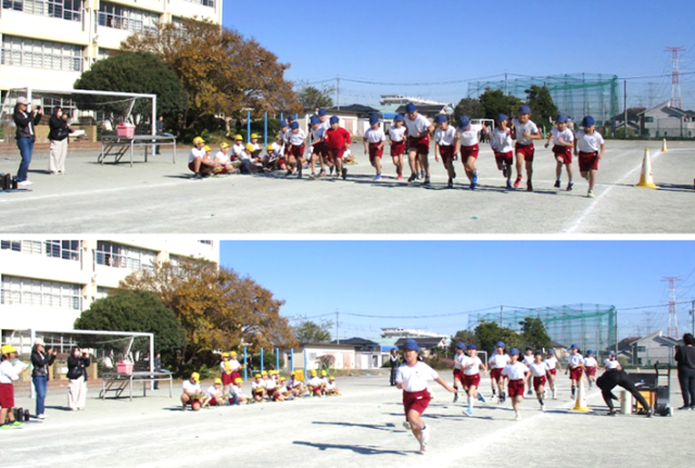 穏やかな日差しの中、今日は3年生、4年生の持久走記録会が学年ごとに行われました。中学年は4分間走、どちらの学年も友達への声援が素晴らしく、友達の声援に押されてみんな最後までがんばっていました。