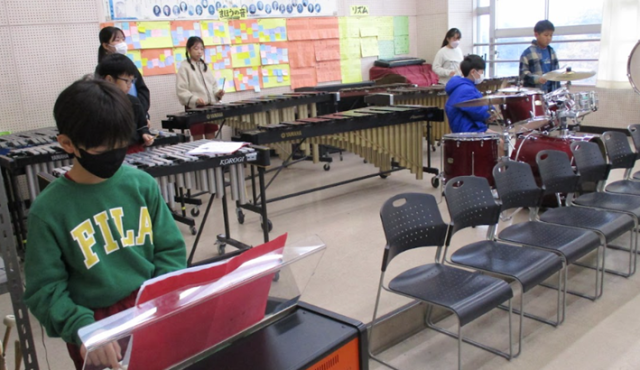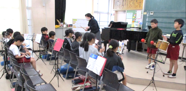 5年生 音楽 発表会に向けて 公開日 2025/11/25 更新日 2025/11/25 お知らせ 1月の学校公開日の音楽発表会で披露する合奏の練習をしていました。今日初めて通して演奏したそうで、同じ曲を3回繰り返し行うつなぎの部分を何度も確認しながら練習していました。