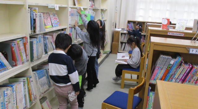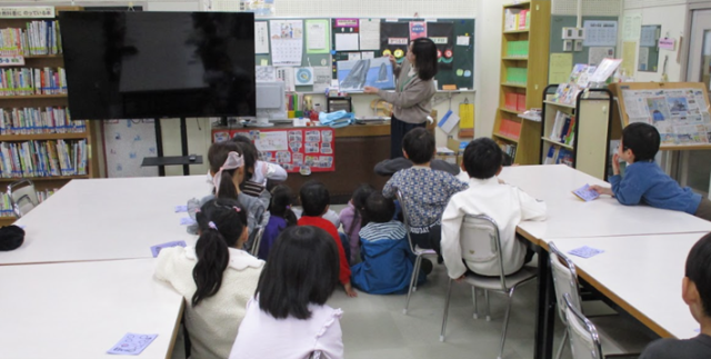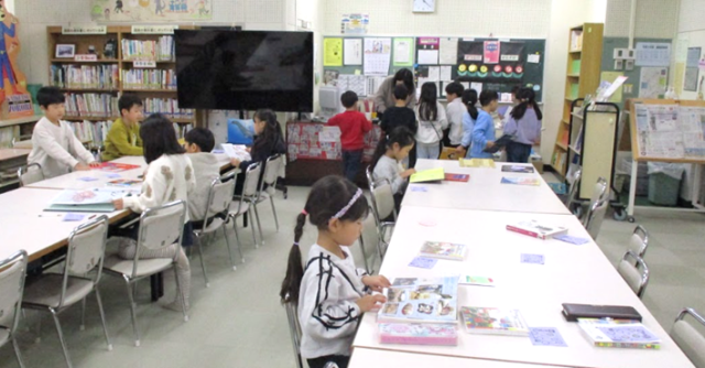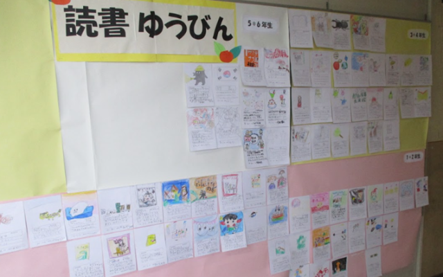 1年生もたくさん本を読んでいます。図書の時間には司書の先生が読み聞かせをしてくれていました。今日の本は「シロナガスクジラ」、今も昔も世界で一番大きな動物だそうです。読書ゆうびんもたくさん集まっていました。