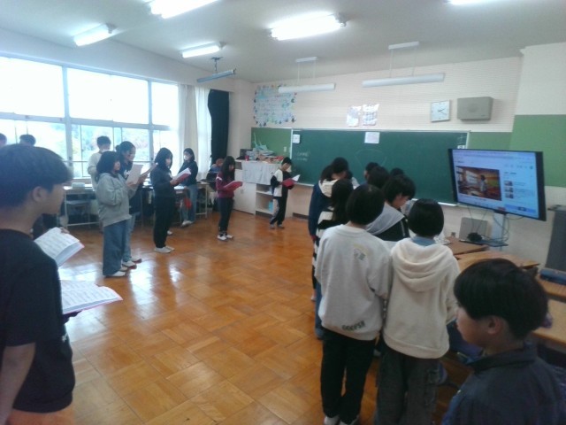 音楽ファイルを片手に教室で歌を歌っていました。歌っていた曲は、卒業式で歌う「正解」という歌です。まだ歌声にぎこちなさがありますが、藤小の子どもたちの透き通った歌声が教室中に響き渡っていました。まだ卒業式は先ですが、とても素敵な卒業式が想像できる歌声でした。