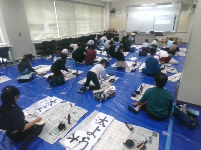 4年生がコンピュータ室で、書き初めを書いていました。この部屋は、先日、学校応援団・保護者のボランティアの方々が整備をしてくださった部屋です。真ん中に広く空いたスペースを活用し、十分なスペースの中で、子どもたちは集中して書き初めを書いていました。力強く、太く上手にかけている子がたくさんいました。書き初め展が楽しみですね。