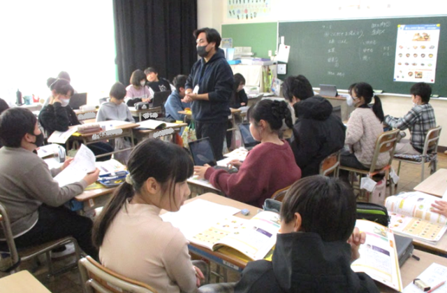 栄養バランスを考えた食事をとるために、1食分のこんだてを考える課題に取り組んでいました。主菜と副菜2品、そしてお味噌汁。教科書やインターネットを使ってどんな組み合わせにするか考えていました。冬休み中、お手伝いをしながら家族と一緒に作ってみるのもいいですね。