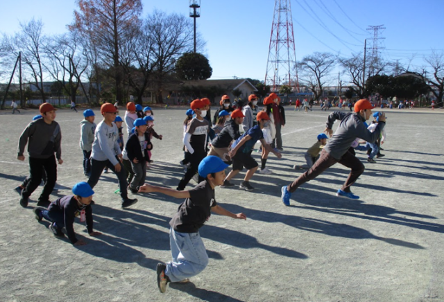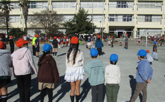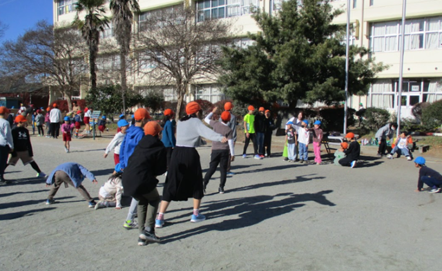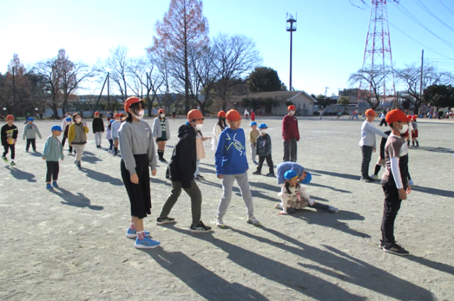 業間休み、6年生が1年生に声をかけ、いっしょに「だるまさんが転んだ」をして楽しそうに遊んでいました。1年生も大喜び。1年生は優しい6年生が大好きです。