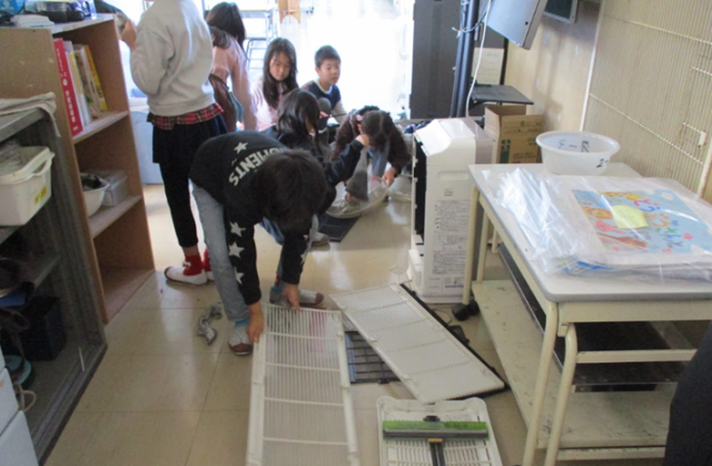 2年生のあるクラスでは扇風機や空気清浄機のファンやフィルターまできれいに掃除。これで3学期もインフルエンザ対策はばっちりです。ふじのこ学級では人数が少ない中、たくさんの荷物をみんなで出して大掃除、3組の高学年が1組さんのお手伝いもしてくれました。