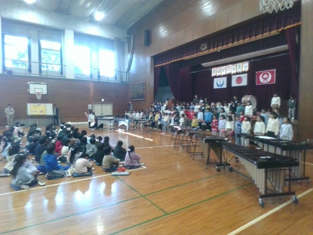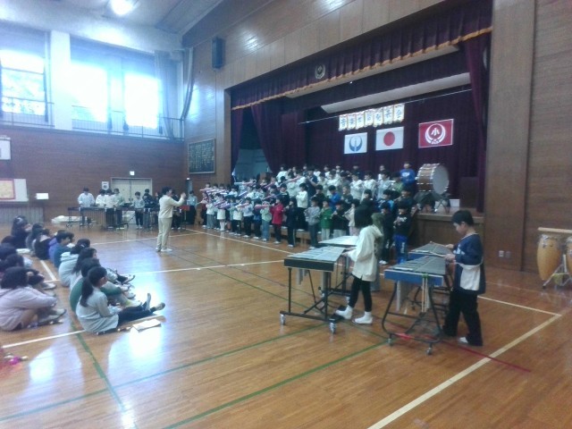 体育館で、音楽学習発表会が行われました。今日は、学校公開日で保護者の方々も来校し、各学年ごとに合唱と合奏の発表が行われました。中には緊張をしてる様子の子どももいましたが、どの子もとても楽しそうな笑顔の中で、合唱・合奏ともにとても素敵なハーモニーを奏でていました。保護者の皆様、本日はご来校くださり、ありがとうございました。