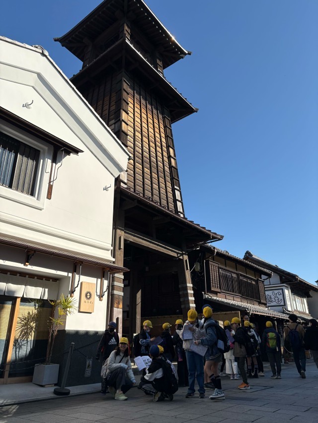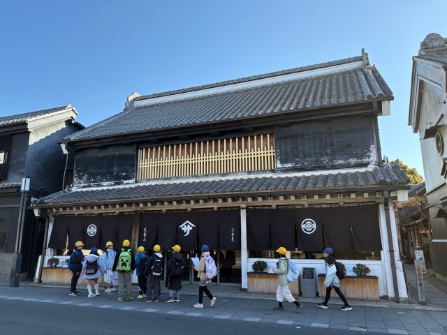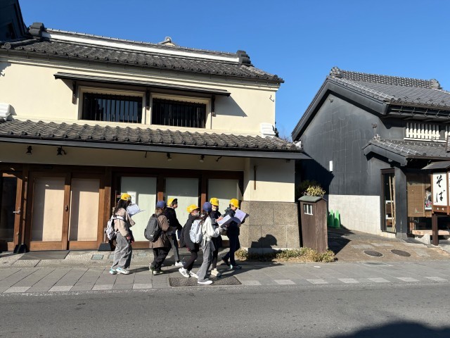 4年生が社会科見学で川越市の街並みを見学しています。グループ活動開始です。子供たちは、チェックポイントを回りながら、外国人観光客が川越に来る秘密を探しています。