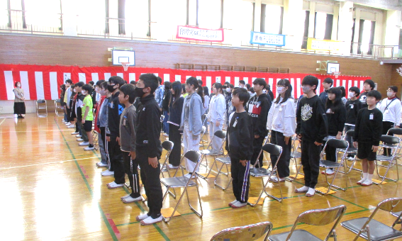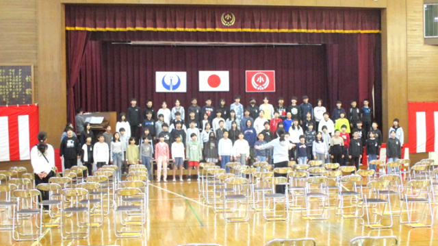 今日から体育館での卒業式練習が始まりました。学校開放利用団体の皆さんにワックスがけをしていただき、5年生が椅子をビシッと並べてくれました。先生方で紅白幕も設え、厳かな式場で初めての練習です。さすが藤小の6年生、初日から姿勢が良く意識の高さが伺えました。