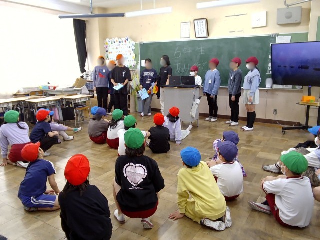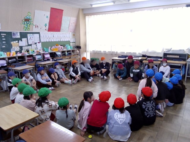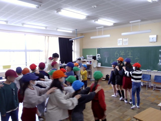 今年度最後となる「にこにこタイム」が行われました。今回は5年生がリーダーを務め、6年生への感謝を伝える会でした。5年生の進行により、下級生が作った人間アーチをくぐって6年生が入場。その後、5年生のそれぞれのグループが企画した「じゃんけん列車」や「しりとり」、「爆弾ゲーム」などで盛り上がっていました。 みんなが楽しそうに遊ぶ一方で、一生懸命に会を仕切る5年生の姿から最高学年を引き継ぐ決意と、卒業が近づく寂しさが伝わってきました。