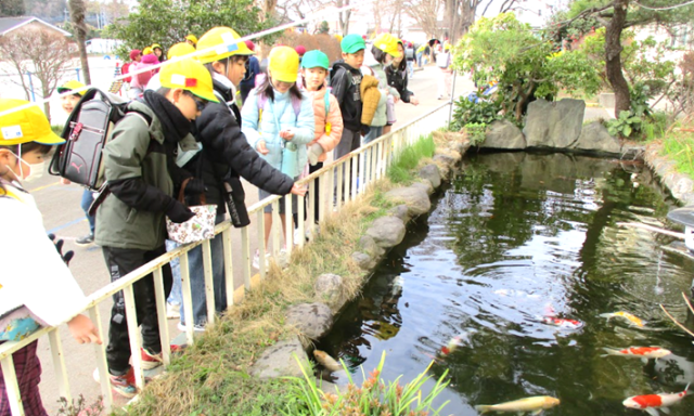 先日藤中を卒業した3年生が6年生の時に沿い児をしてくれた藤小の池。そして、新潟県からいただいた錦鯉。3年になります。きれいな水の中を錦鯉が気持ちよさそうにゆったりと泳いでいます。毎日、ボランティア委員会のみんながろ過装置のフィルターの掃除をしてくれています。