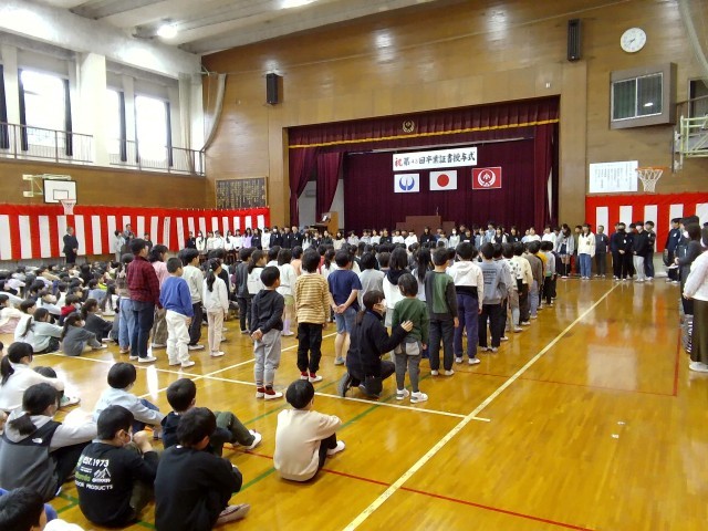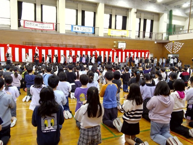 本日「お別れ式」が行われました。これは卒業生から在校生へのバトンを繋ぐ引き継ぎ式です。 在校生の温かい拍手とリコーダーの音色に迎えられて卒業生が入場。各学年からお礼の言葉と、歌のプレゼントが贈られました。明日はついに卒業式ですが、在校生は臨時休業となるため、今日が最後のお別れとなります。 いつも優しく、後輩思いだった6年生。今まで本当にありがとうございました。