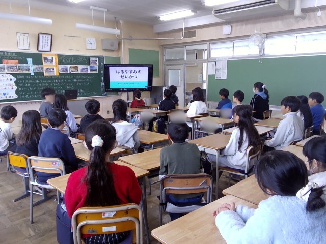 令和7年度の修了式が行われました。国歌・校歌に続き、各学年の代表児童がこの一年間を振り返っての発表を行いました。その後、校長先生から各学年の代表者に修了証が授与されました。 この一年間で、子どもたちは心身ともにたくましく成長しました。「ふじっ子」の皆さん、一年間本当によく頑張りましたね。次年度の更なる飛躍を期待しています。保護者の皆様には、この一年間温かく見守っていただき、心より感謝申し上げます。本当にお世話になりました。