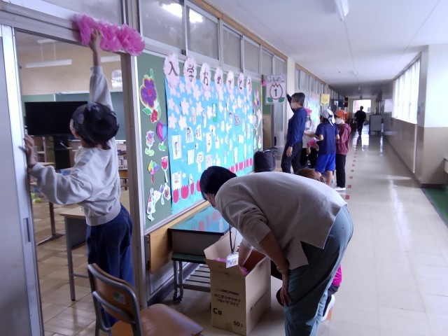 新6年生が登校し、準備登校が行われました。入学式の会場整備をはじめ、昇降口や教室、廊下、トイレの清掃など、8日の始業式に向けた準備を整えました。