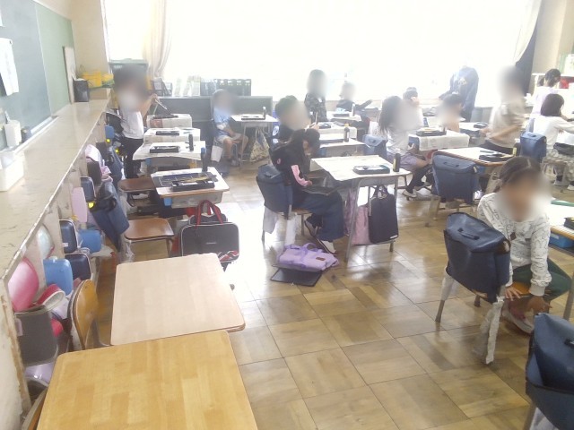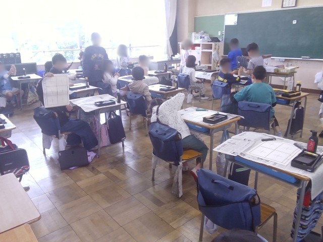 今日は、机の上への道具の並べ方を丁寧に確認しました。次回はいよいよ筆を持って文字を書きます。とても楽しみですね。