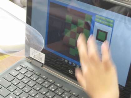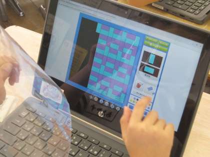 タブレットに入っているデジタル教科書を使ってテキパキと作業できるので、みんなきれいな模様に仕上げることができました。