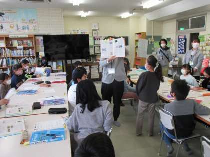 4年生 百科事典を使って 公開日 2021/12/08 更新日 2021/12/08 お知らせ 鶴ヶ島市立中央図書館の司書の方に来ていただき、新しいポプラディア百科事典を使って、調べ物をしたり興味のある言葉を見つけたりしながら、百科事典の使い方を学習しました。インターネットでいろいろ調べられますが、本の良さはいろいろなものが目にとび込んでくること、子供たちは次から次へと興味のある言葉を見つけ読み入っていました。