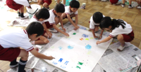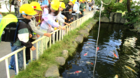 藤小ファームにじゃがいもを植えました。畝を作って、等間隔に種イモとなるじゃがいもを並べて植えました。1組さんと昨日も植えたので、たくさんと収穫できとると思います。