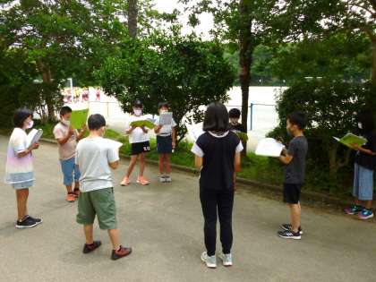 4年生 音楽 合唱祭に向けて 公開日 2022/06/21 更新日 2022/06/21 お知らせ 4年生は合唱祭に向けてグループ活動に入りました。今日は天気も良いので外に出て、リーダーを中心に思いっきり発声と歌の練習をやっていました。