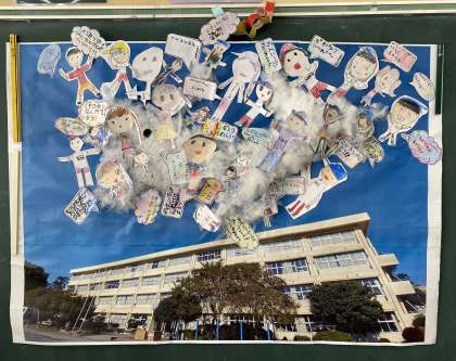 1年生の教室に行ってみると、1年生のみんながくじらぐもに乗って楽しそうにしていました。