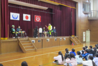 トップバッターは4年生。クラブ活動が始まり高学年の仲間入りした4年生。ソーランとダンス、書道パフォーマンスで6年生に感謝とお祝いの気持ちを伝えました。