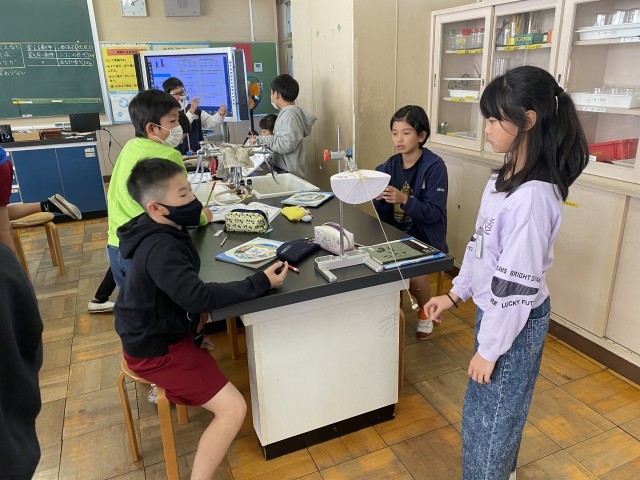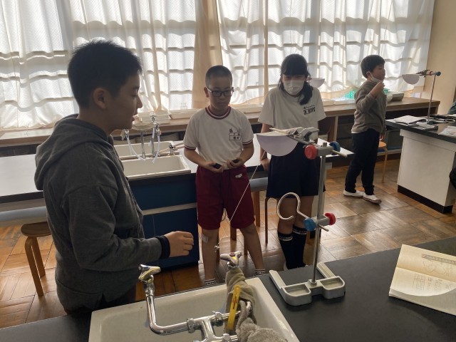 ゼンマイ仕掛けの振り子時計の時間の進みを調整する方法ってご存じですか?ゼンマイ仕掛けの振り子時計なんてもうどこにもないでしょうか。振り子の往復する時間は、振り子の長さ、振れ幅、おもりの重さのどの要素によるのでしょう。5年生が一つずつ条件を変えながら検証します。ここに算数の統計の学習とも関連させて、3回行ってその平均を出して決まりをみつけます。
