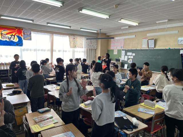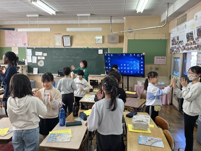 言語に慣れ親しむ・・・外国語活動では高学年の外国語に繋げていくため最も大切なことになります。4年生の授業では、アクティビティを多く取り入れ、お邪魔した本日は・・・ABC~Zまでの単語を歌と手遊びに合わせながら楽しんで「慣れ親しんで」いました。とにかく笑顔が最高!見ているこっちも気持ちが良いです。
