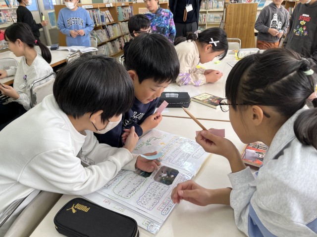 本日の3・4時間目には、図書館の職員の方が来てくださり、4年生の夏に行った調べる学習コンクールの振り返りを行ってくださいました。優秀賞の作品を取り上げ、どこが良いのか・・・工夫した点は・・・ポイントを子供たちにフィードバックを行うことで、来年度への意欲付になったことと思います。また、良さを具体的に提示することで、作品を見る視点を意識することができるようになりました。その後に行ったギャラリーウォークでは、さっそく友達の作品の良さを具体的に見つけることができていました。