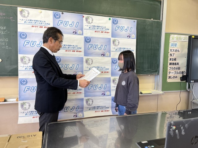 本日の給食後の集会の時間には賞状伝達を行いました。家庭科、図工、理科、国語・・・等、たくさんの児童の名前を呼び、たくさんの賞状をお渡ししました・・・ということは、同じ数だけ渡された人(活躍した人)がいるということ・・・素晴らしいですね。オンラインで行い、家庭科室に集まってもらいましたが全員立派な態度で臨むことができました。日々の頑張りが実を結ぶ・・・自信になりますね。おめでとう!!