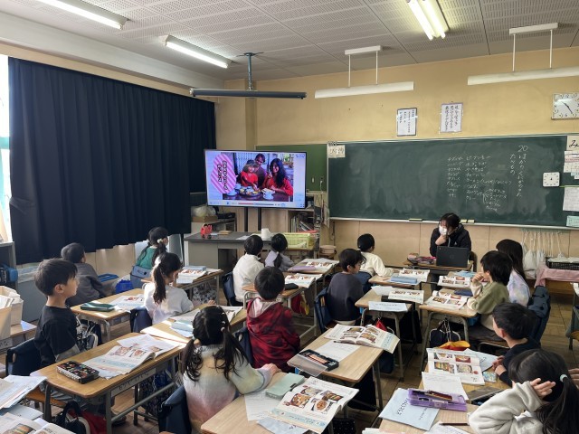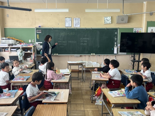 1年生の教室を回ってみますと、生活科では「ふゆをたのしもう」という単元を取り扱っていました。自分の身の回りにはどんな「ふゆ」があるかを出し合い、今後のふゆさがしに繋げていく計画のようでした。隣のクラスでは、3学期のめあてを立てているところでした。子供たちに「めあては達成できそう?」と声をかけると、間髪入れずに「頑張ります!」とのことでした。めあてが意識できるよう担任の先生が掲示していましたが・・・みんな頑張っていこうね。また別のクラスでは国語を行っていて、外国から来た食文化にはどんなものがあるかをみんなで探していました。モニターに映し出す画像の食べ物はどこの国のもの?ICT機器を活用し、そんなやり取りを子供たちと楽しんでおりました。
