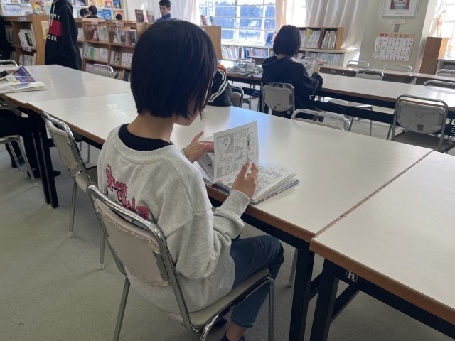 情操教育の一環として読書を行うことは非常に有効な手立てである・・・私は常々そう考えております。読書は想像力・表現力を育成し、心を豊かにします。読書離れが課題にもなっている昨今・・・活字に触れる大切さをぜひ子供たちにも体験し、習慣化してほしいと思っています。図書室の前に上履きが見えましたので、様子を見に行きますと、5年生が読書の時間を確保し各々が集中して本と向き合っていました。授業の後に、担任の先生に話を聞いてみると、まさに「読書をする習慣を身に付けて欲しい」とのねらいのもと行っていると話してくださいました。5年生・・・心もしっかり育っています!