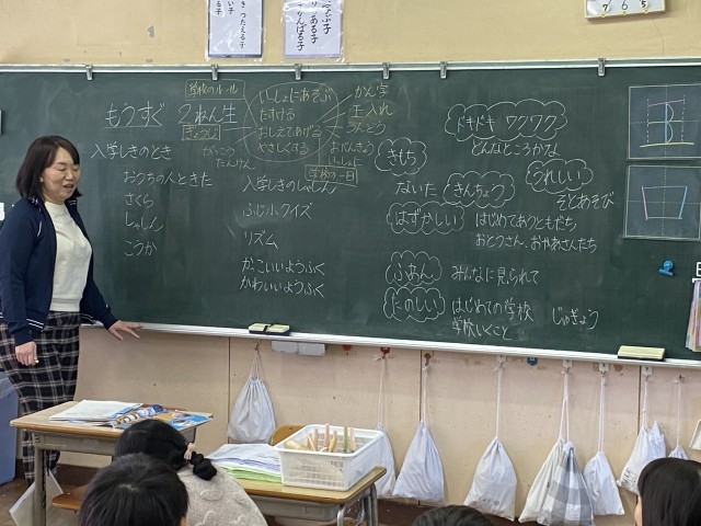 1年生の教室では、2月に近くの幼稚園や保育園の年長さんを招いて何をしてあげようかと相談していました。一緒にこの1年間遊んであげる、いろいろと教えてあげるなど、この1年の成長を感じさせる意見がたくさん出ていました。もうすぐ2年生、いいお兄さん、お姉さんになれそうです。