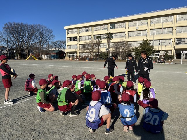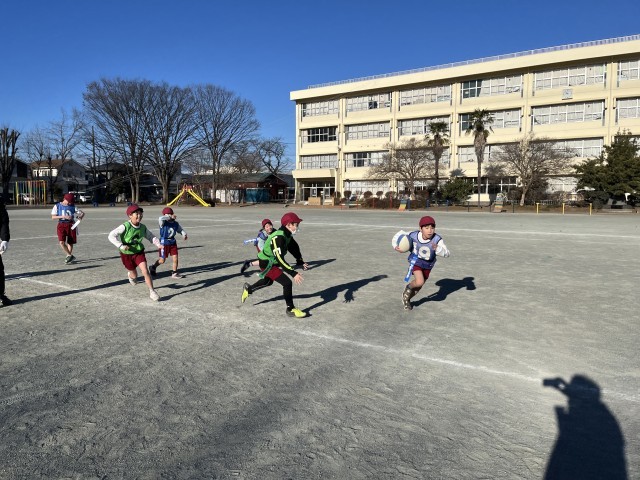 本日は午前中いっぱいをつかい、1時間に1クラスずつ体育でタグラグビーを行いました。件名を見ますと、「出前授業」・・・?本日は我が埼玉県が誇る強豪チーム「ワイルドナイツ」の方々にお越しいただき、実際にご指導をいただきました。体を温めるアップから温かい言葉とご指導をいただき、とにかく子供たちは楽しそう。目を輝かせて走る走る・・・子供もボールも動く動く・・・ワイルドナイツの皆様、本日はありがとうございました。ぜひ活動の様子はお子様に聞いてみてくださいね。
