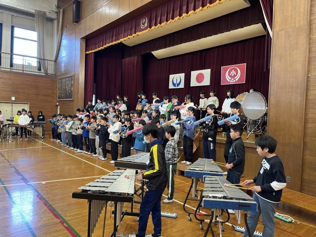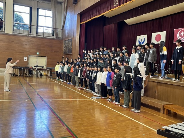 3時間目には5年生・6年生の音楽学習発表会を行いました。移動もキビキビと・・・2時間目のかわいらしい1年生とはまた違った高学年の良さを会のスタート前からみることができました。流石です。5年生の歌は「夢の世界を」合奏「アフリカンシンフォニー」と「キリマンジャロ」の演奏・・・6年生の歌は「はばたこう明日へ」「旅立ちの日に」、合奏は「群青」を聴いていただきました。どちらの学年も歌声も曲想もしっかりハーモニーを奏で・・・それでいて力強さも・・・盛り上げ箇所もおりまぜて・・・とにかく聴き入ってしまいました。素晴らしかったです。
