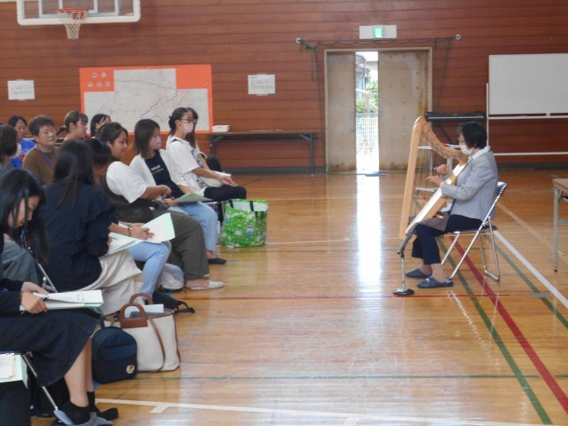 10月2日(木)に就学時健診を行いました。54名のかわいらしい新入児が体育館に集まりました。6年生が誘導係となって新入児たちをエスコートしました。声をかけたり、だっこしたりして6年生はとてもやさしく新入児たちに接していました。健診の裏では、保護者の方に向けて埼玉県家庭教育アドバイザーの方から講話をいただきました。子育てに悩む親の気持ちに寄り添ったやさしさあふれる講話でした。最後のハープの演奏では、やわらかな音色にやさしく包まれました。