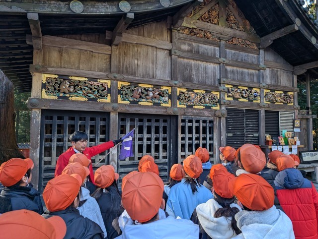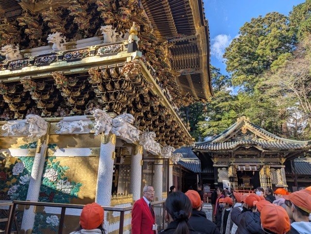 11月20日、21日に6年生が修学旅行に行きました。1日目はいろは坂をこえて華厳の滝、湯滝、奥日光湯元温泉の源泉を巡りました。湯ノ湖のまわりには所々雪がありましたがとてもよい天気でした。日光の美しい自然を全身で感じ取っていました。2日目は日光東照宮と日光江戸村に行きました。東照宮では、ガイドさんの話に熱心に耳を傾けながら見学していました。江戸村ではグループごとに江戸の町並みを巡りました。忍者の修行をしたり、お買い物をしたりと、江戸の世界を満喫していました。