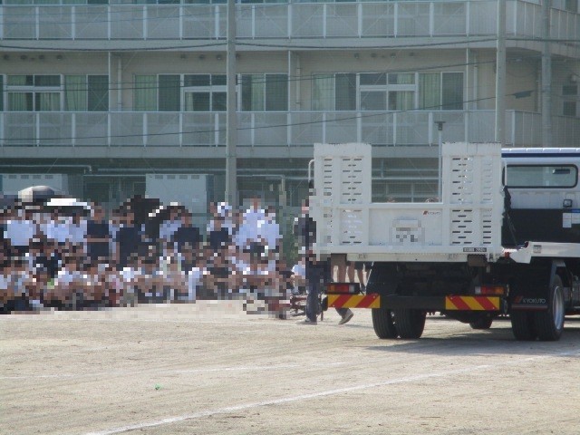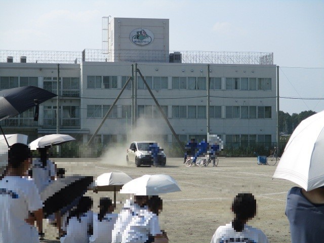 9月1日(月)鶴ヶ島中学校校庭にて「スケアード・ストレイト教育技法による交通安全教室」を実施しました。西中学校との合同開催です。プロのスタントマンによる交通事故場面の実演を参観し、事故の恐ろしさを実感するとともに正しい自転車の乗り方について学びました。部活動や職場体験などこれから自転車に乗る機会がますます多くなりますが、絶対に事故にあわないようにみんなで気をつけていきましょう。