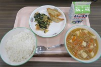 ★今日のメニュー★・ごはん・牛乳・マーボ豆腐・揚げぎょうざ(2個)・ナムルごちそ...