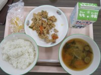 ★今日のメニュー★・ごはん・牛乳・具だくさんみそ汁・豚肉の甘辛炒め・冷凍りんご今...